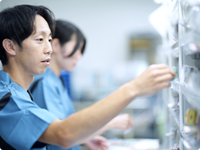 私たち薬剤部は、質の高い医療の提供と安全確保のため日々研鑽し、専門性の高い臨床薬剤師として、患者さん、チームメイト、地域の医療機関にきめ細かく対応し、薬剤にかかわる安全を守ります。