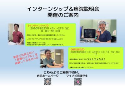 《看護師・2027年度入職者対象》インターンシップ・病院説明会 開催のお知らせ!