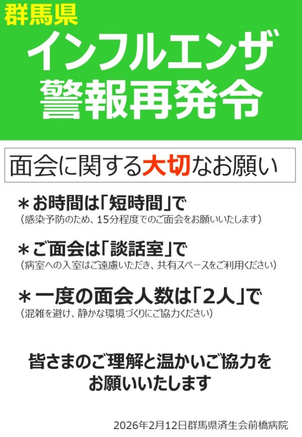 2026年1月9日(金)より面会制限を緩和いたします.
